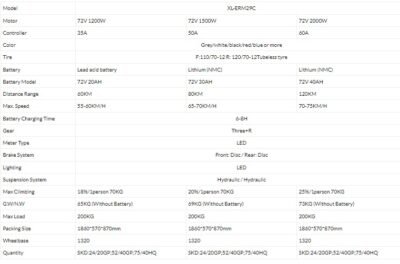 هل تبحث عن وسيلة نقل مريحة وصديقة للبيئة؟ لا تبحث بعيدًا، إليك سكوتر XL-ERM29C الكهربائي! بفضل محركه القوي 60 فولت 1000 واط، تصل سرعة هذا السكوتر إلى 55 كم/ساعة، مما يجعله مثاليًا للتنقلات اليومية، وقضاء المشاوير، أو حتى للتجول في المدينة.