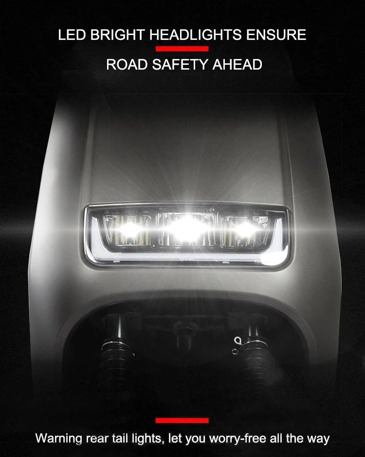 تتميز دراجتنا النارية الكهربائية القوية بمساحة تخزين واسعة، وقوة عالية، وسرعة فائقة، وعمر بطارية طويل يكفي للتنقلات اليومية وقضاء المشاوير، بالإضافة إلى سهولة صيانتها وانخفاض تكلفتها. توفر هذه الدراجة تجربة تنقل سلسة وهادئة دون الحاجة إلى استخدام الدواسات اليدوية.